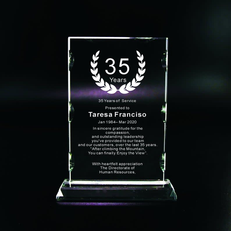 Glass trophy, best employee gifts