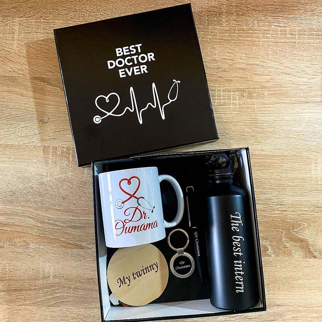 Customized mug, customized thermal bottle, customized pen, customized keyholder.
